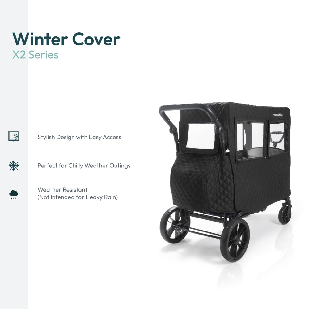 WONDERFOLD Cold Weather Shield Stroller Cover for Winter Made of Premium Breathable Cationic Fabric Filled with Cotton for Warmth, Hook-and-Loop Window Openings (Fits Only X2 & X2M)