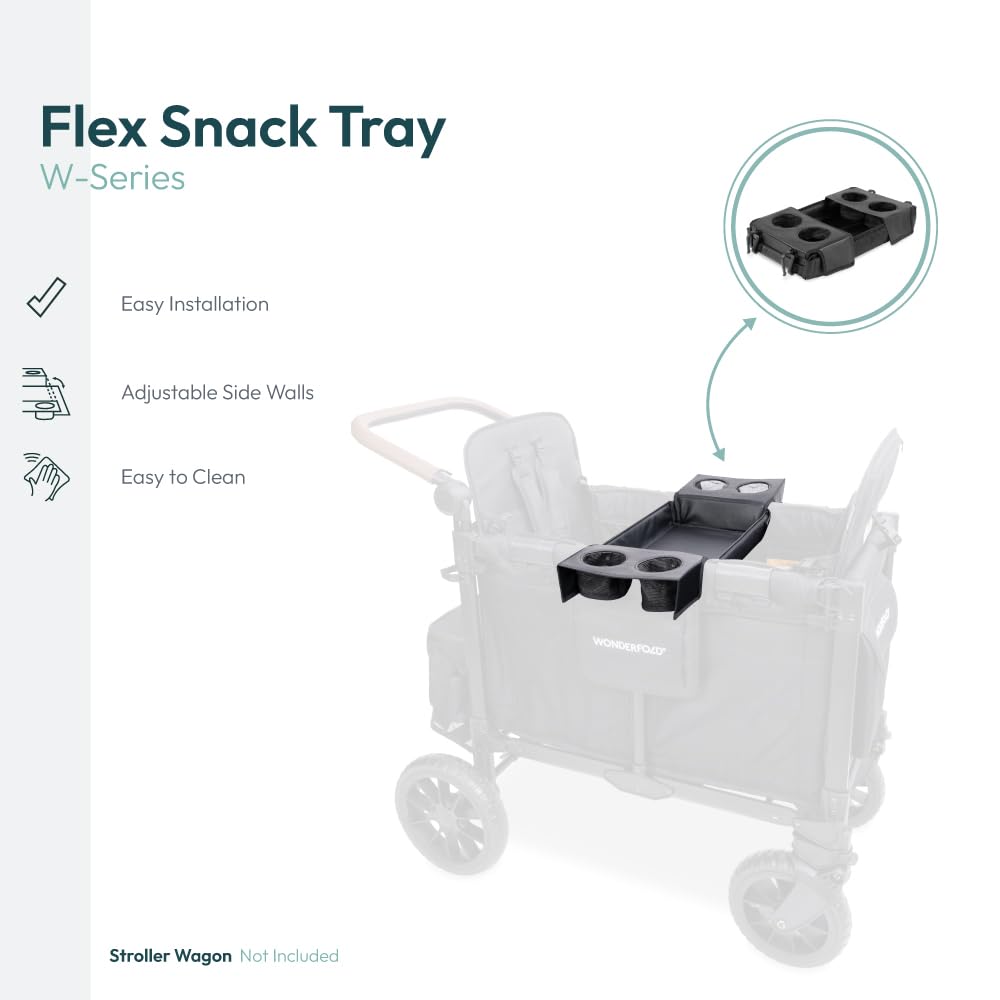 WONDERFOLD Flex Snack Tray for W2 Stroller Wagon with Convertible Cup Holders & Adjustable Sidewalls to Maximize Space, Easy to Install, Easy to Clean