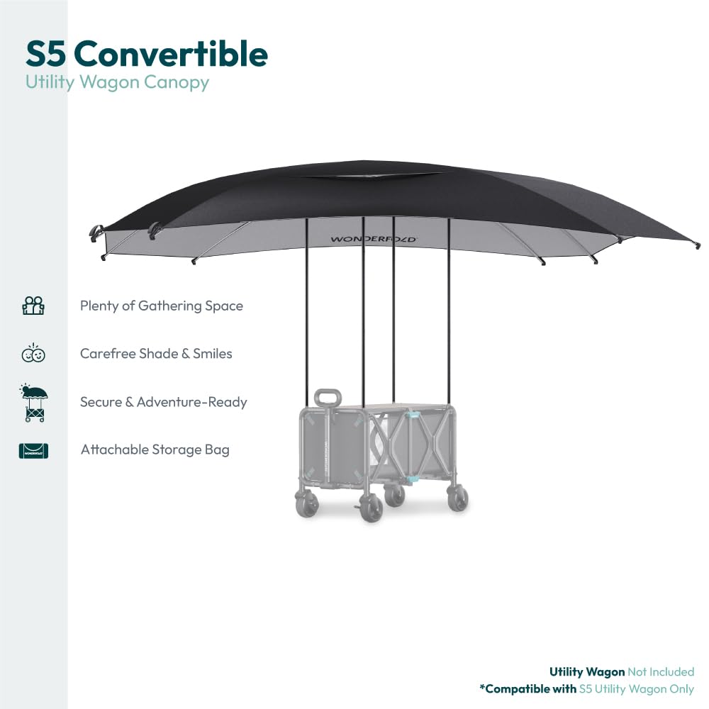 WONDERFOLD Sun Shade Canopy for S5 Convertible Utility Wagon - Large Umbrella with Sturdy Attachment & Plenty of Shade Around Your Utility Cart, Black
