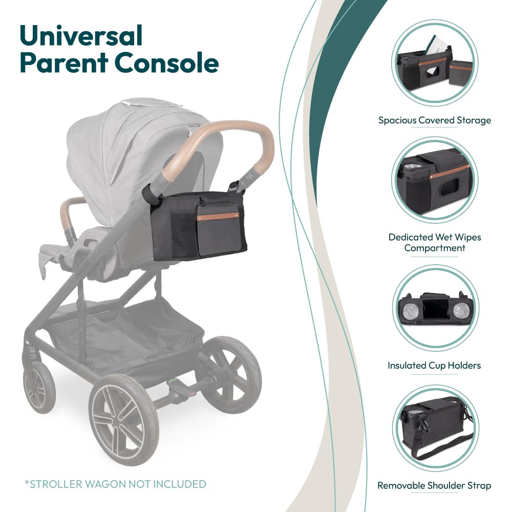 WONDERFOLD Universal Parent Console Stroller Organizer with Insulated Cup Holders, Hook & Loop Closure Handle Attachment, 2 Storage Pockets, Removable Shoulder Strap for Easy Transport—