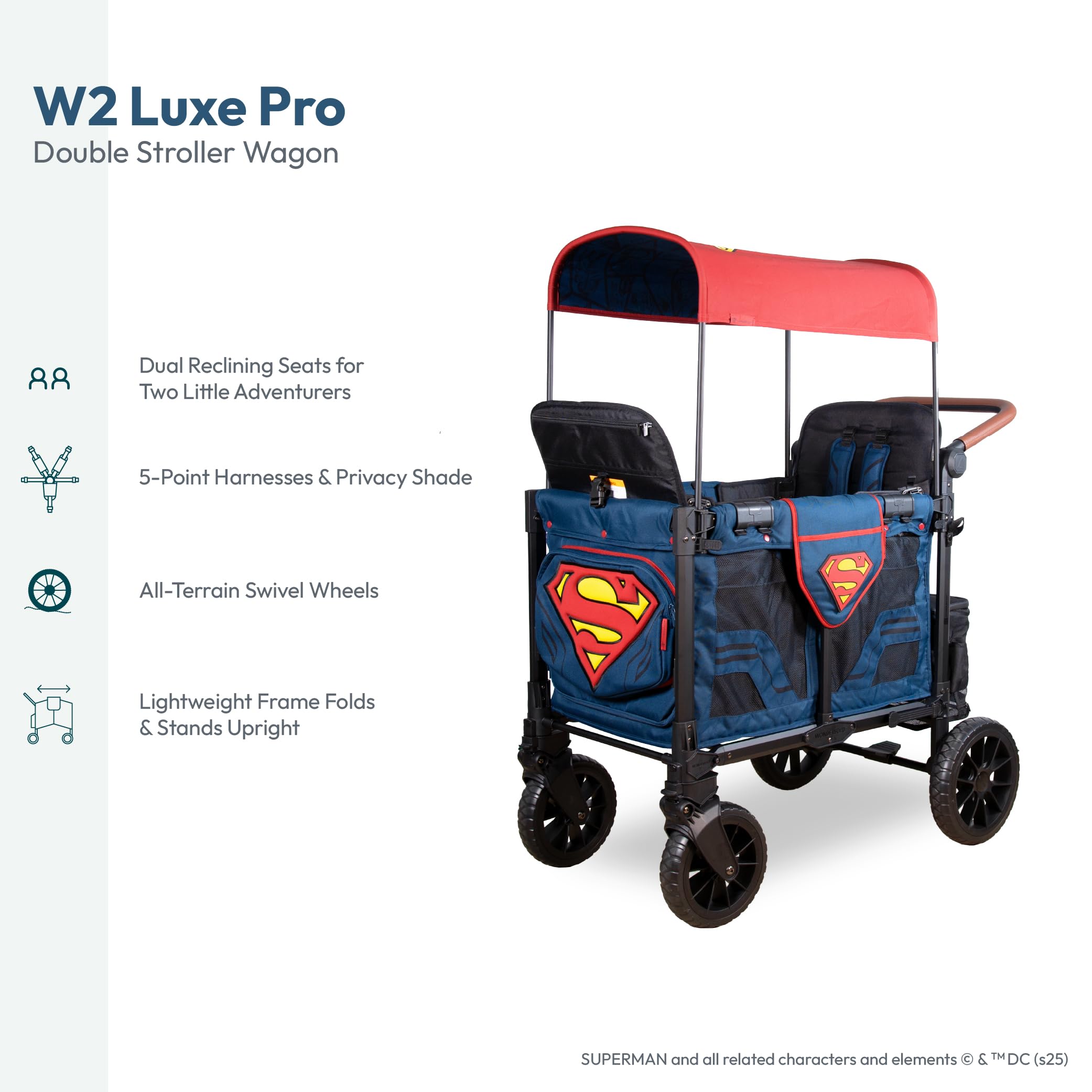 WONDERFOLD W2 Luxe Pro Special Edition Superman Stroller Wagon (2 Seater) - Collapsible Wagon Stroller with Seats with 5-Point Harnesses, Easy Access Zipper Door, and Removable Sun Canopy