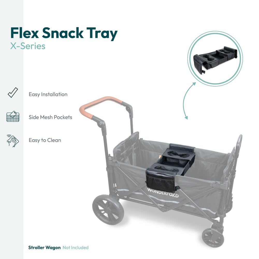 - COMPATIBILITY: Snack organizer tray is compatible with and perfectly sized to WONDERFOLD X2 foldable wagon stroller. This model is NOT compatible with W2 Stroller Wagon.